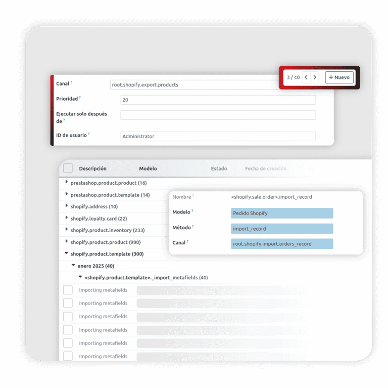 Imagina un entorno donde confirmar cientos de pedidos, enviar facturas electrónicas a la agencia tributaria o importar datos desde plataformas externas se realice de forma automática y ordenada, sin que el sistema se ralentice. Con un sistema de monitorización avanzado, podrás visualizar el estado de cada tarea, gestionar prioridades y detectar posibles fallos antes de que se conviertan en un problema.