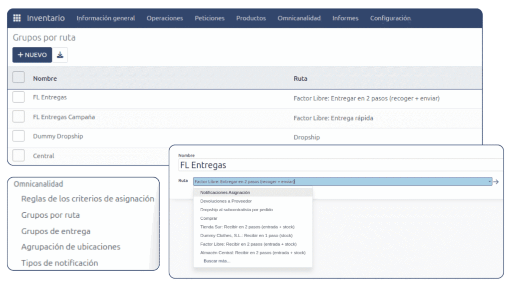 Este paquete hará que puedas establecer reglas para que los envíos salgan de un almacén u otro según conveniencia, evaluándose primero la rentabilidad -entre otros factores-. En empresas que sufren demandas estacionales muy variables y marcadas, es especialmente útil para evitar que los almacenes no sepan abordar esa carga de trabajo. Con este paquete obtendrás funcionalidades para crear un sistema de asignación de almacén, un sistema de exportación de stock y un sistema de notificaciones.