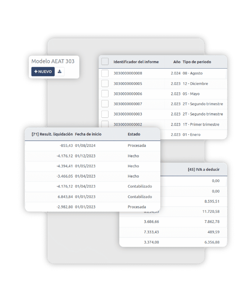 Con una interfaz intuitiva y adaptable, podrás generar modelos fiscales como el 303, 347, 349, 111 y 115, entre otros, obteniendo los ficheros en el formato oficial para su presentación directa en la AEAT. Además, podrás revisar y corregir posibles inconsistencias antes del envío, evitando incidencias y reduciendo riesgos fiscales.