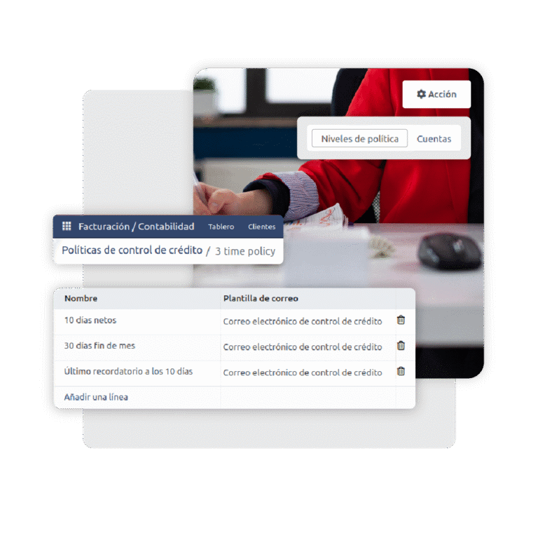 Cuenta con un sistema integral de seguimiento y comunicación de impagos basado en fechas de vencimiento, permitiendo aplicar acciones de cobro en función del tiempo transcurrido y la criticidad de la deuda definiendo políticas de actuación a varios niveles y establecer criterios de tolerancia. Además, incluye un sistema de comunicación de impagos, con recordatorios escalonados y plantillas automáticas de correo o carta según la política aplicada. Todo esto ayuda a optimizar la gestión de cobros y reducir la morosidad, algo que sólo se logra teniendo un ERP de gestión de pedidos con control de riesgo de clientes.